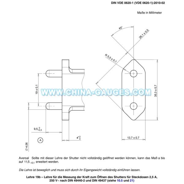 VDE 0620-1 Lehre 19b Gauge for Testing Force Required to Open Shutter for Outlets 2.5 A, According to DIN 49440-2 and DI Images |